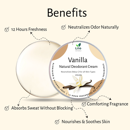 Natural Deodorant Cream | Vanilla | Enriched with Shea Butter, Mango Butter, Jojoba & Almond Oil