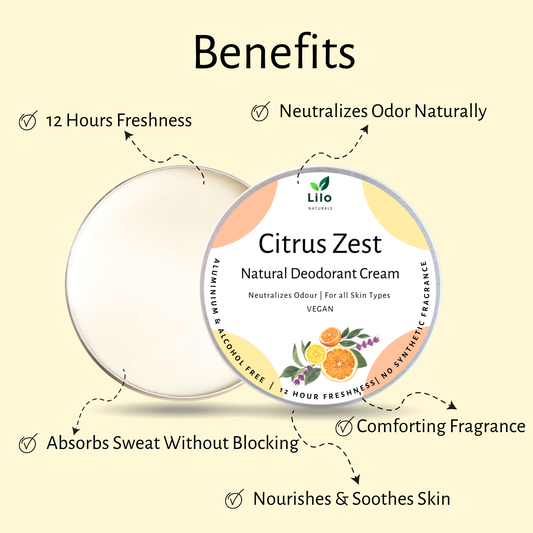 Natural Deodorant Cream| Citrus Zest | Enriched with Shea Butter, Mango Butter, Jojoba & Almond Oil